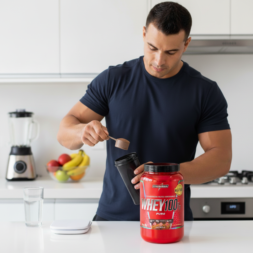 O Whey 100% Pure é o whey protein concentrado da Integralmédica, desenvolvido para quem busca performance, ganho de massa muscular e recuperação eficiente. Cada dose oferece 21 g de proteína concentrada do soro do leite, 9,7 g de aminoácidos essenciais e 4,6 g de BCAA — nutrientes fundamentais para a construção muscular e a síntese proteica. Com alto valor biológico e excelente absorção, o Whey 100% Pure Integralmédica é uma ótima opção para o pós-treino, promovendo a manutenção da massa magra e otimizando a recuperação. Possui baixo teor de carboidrato, gordura e sódio, é isento de glúten e formulado com matéria-prima importada de alta qualidade. Se você busca um suplemento completo para acompanhar sua rotina de treinos intensos, o whey protein concentrado Integralmédica é a escolha ideal. Desempenho, nutrição e praticidade em um único produto.